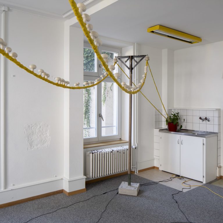 Champignons, entraide, réseaux, communication, domestication de la nature, difficile compréhension, intérieur, urbanité, dehors, même si le courant passe nous ne sommes pas certain.e.s de nous comprendre, le sous-sol en l’air, symboles, clichés, plantes, scientifico-politique, l’humain n’a pas réussi à dominer le champignons, non, et le blob nous survivra, comment se relier sans perdre prise, il faut stresser le mycelium des champignons de Paris pour qu’ils produisent des fruits, ces organes sexuels que nous mangeons, il faut les stresser pour qu’ils produisent, c’est drôle, ça me fait penser à nos systèmes économiques.